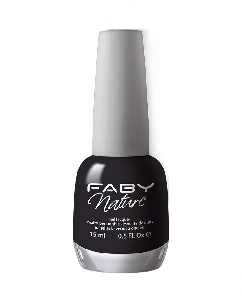 Intense black nail polish from the Faby Mother Nature collection : Black Pepper is a strong and decisive color for an impeccable manicure; perfect composition, dense at the right point, they allow a uniform and very simple application, the Faby Mother Nature enamels are all covering colors that are best expressed with two coats, they have a very fast drying, excellent pigmentation. eco-friendly and made up of 87% material of plant origin. They are obtained from the processing of wood pulp, cotton, corn, cassava and other vegetable raw materials not derived from oil.