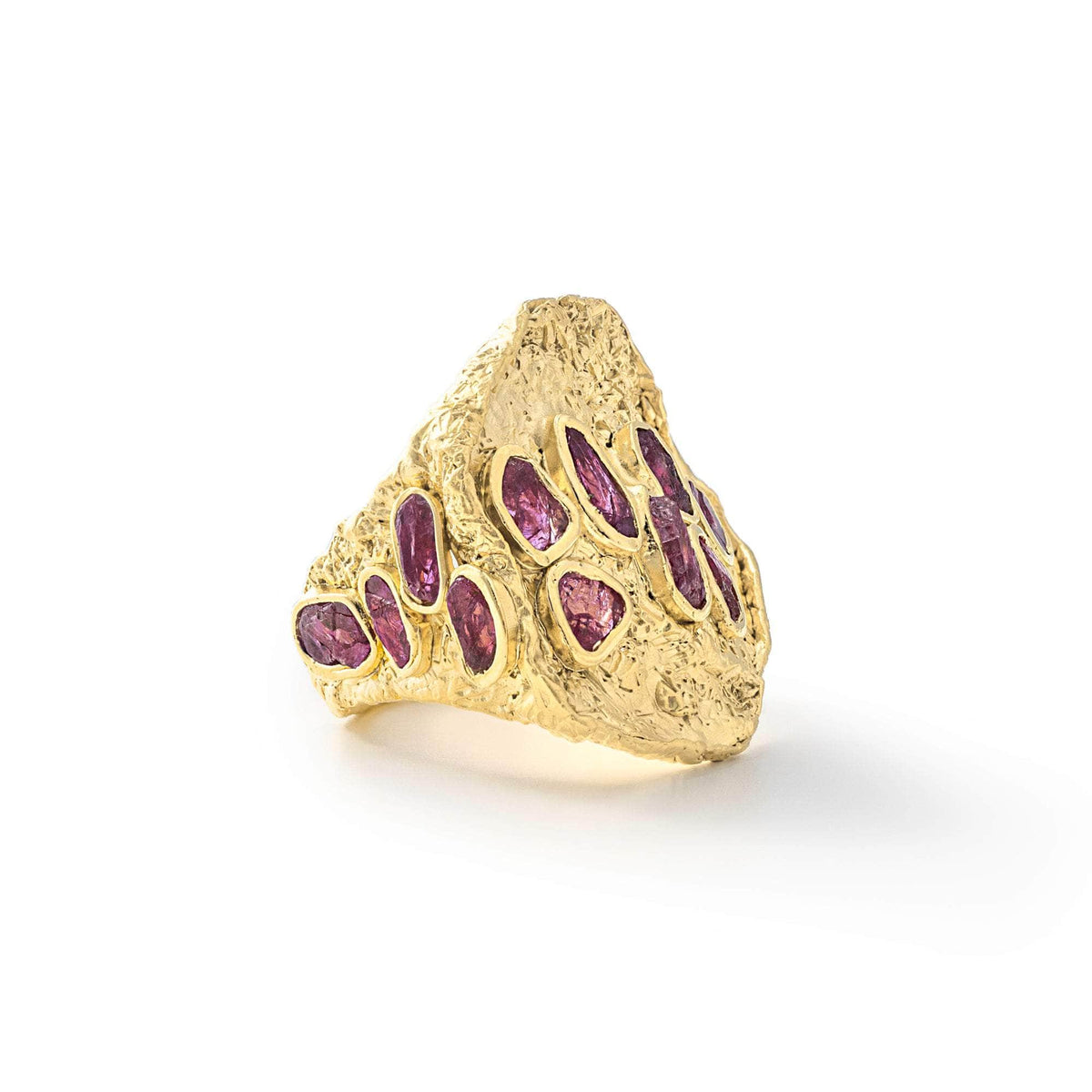 German Kabirski Moch Rough Pink Spinel and Yellow Sapphire Ring