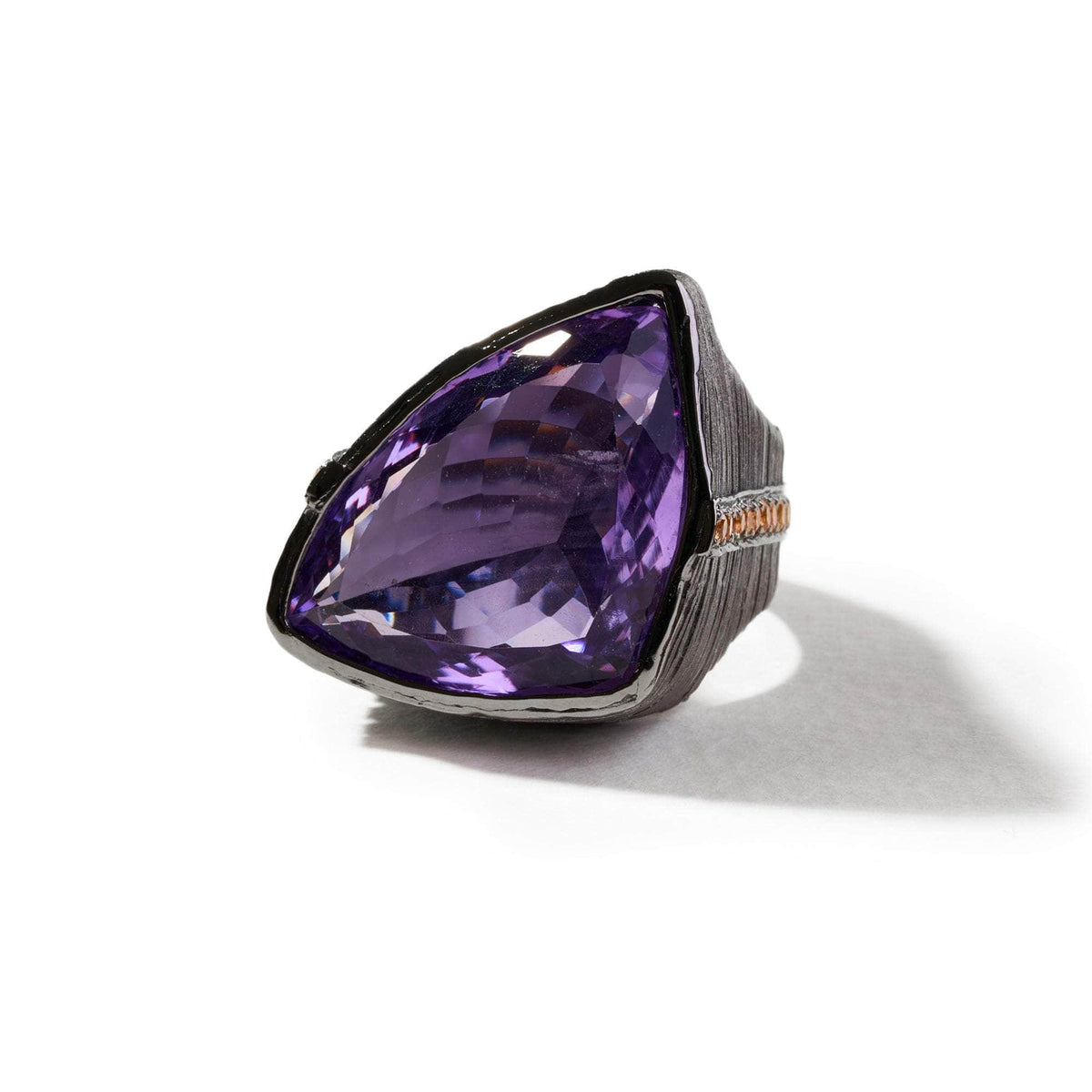 German Kabirski Miraw Rought Amethyst and Black Spinel Ring