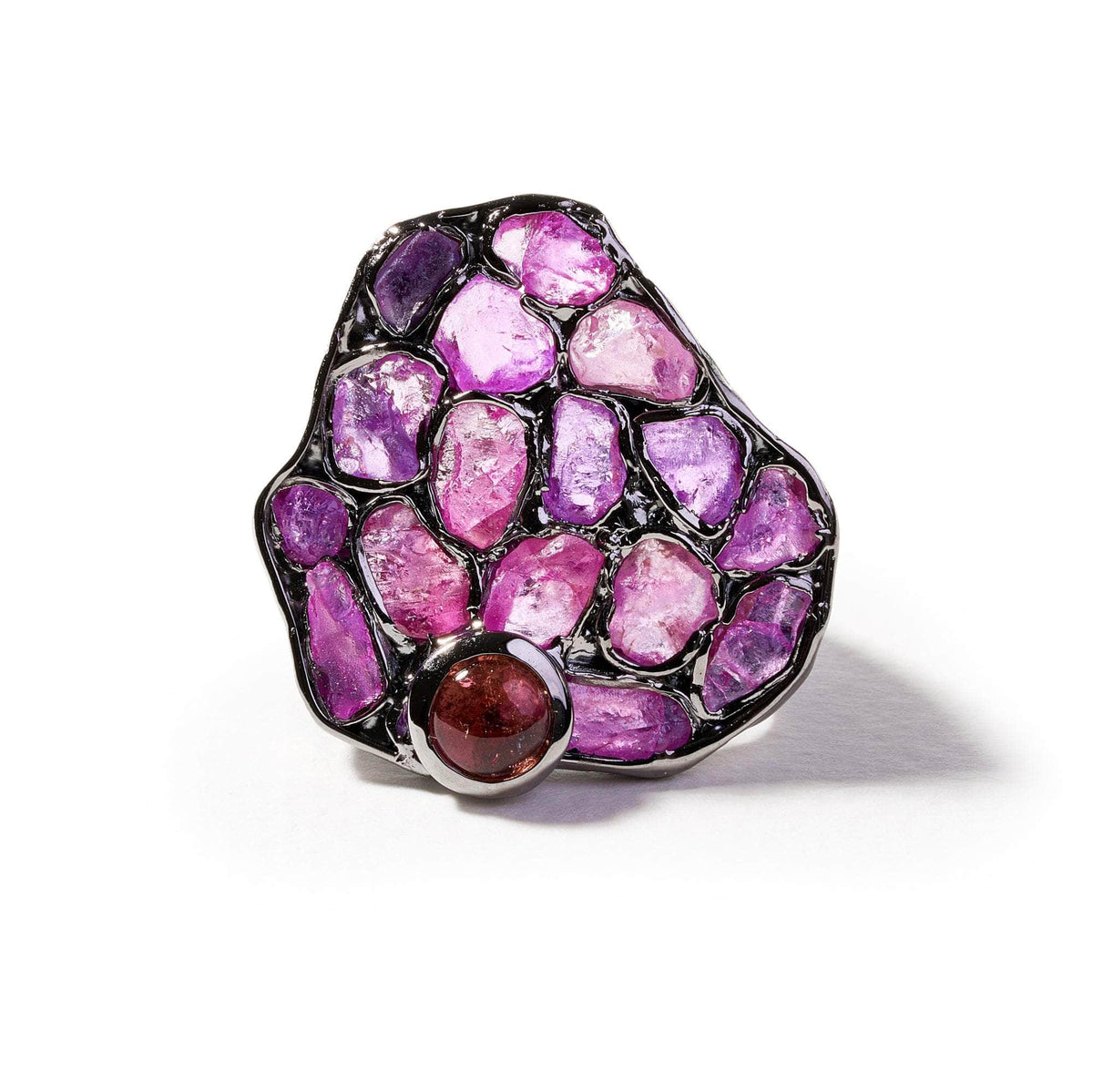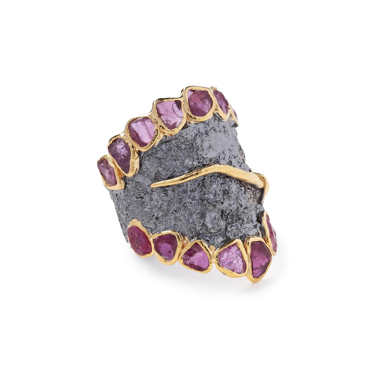 German Kabirski Kaled Rough Ruby and Black Spinel Ring
