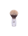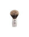 This exquisite shaving brush from the Joris collection is crafted with a solid brass handle elegantly plated in Palladium. The refined vertical gadroon detailing adds a sophisticated touch, while its substantial weight and well-balanced design ensure a secure grip and precise control during use.