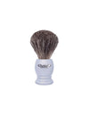 The bristle head is crafted from pure Russian grey badger hair, known for its firm and stimulating texture—ideal for a refreshing facial massage before shaving.