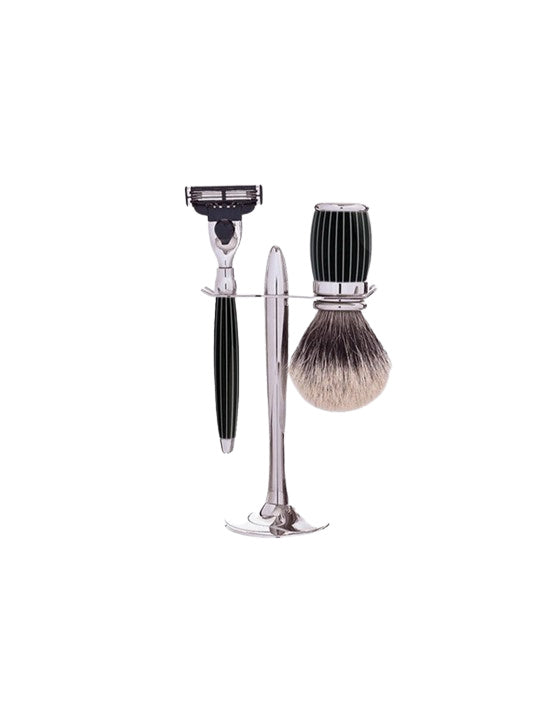 Prestigious and refined matching lacquer and smooth Palladium finish solid brass shaving set. The quality of the materials and the care that goes into their manufacture are the pride of Plisson's craftsmen. This prestigious set includes: