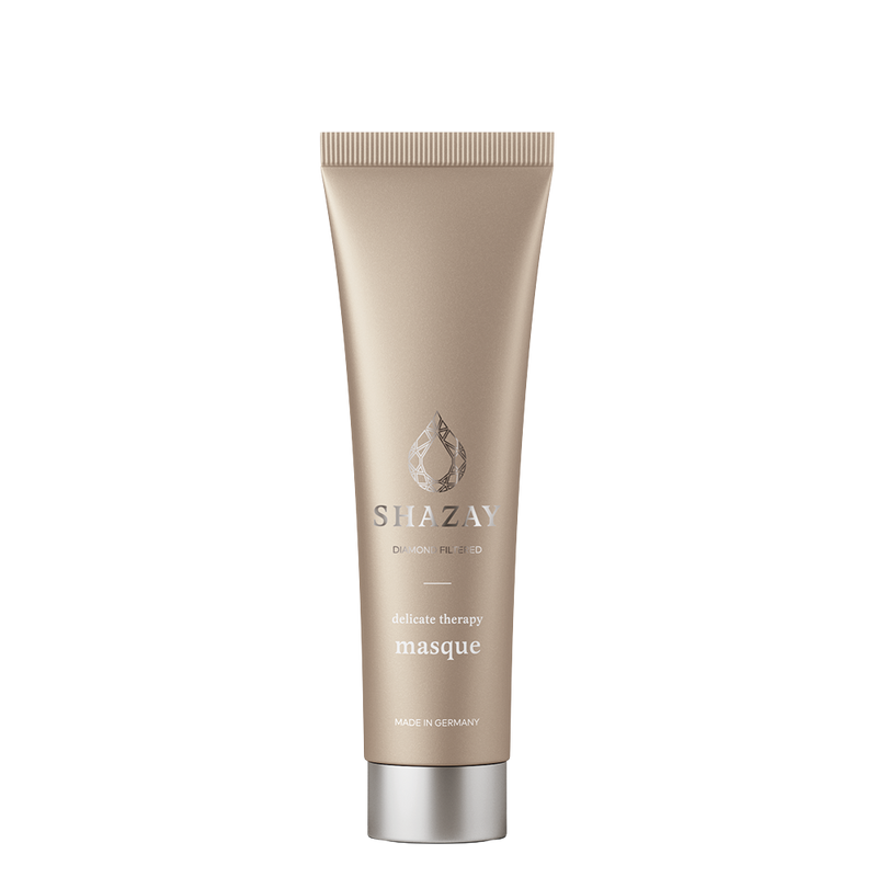 Delicate Therapy Masque is a miracle treatment! The combination of Diamond Filtered Water, beneficial sunflower, jojoba and coconut oil pamper the hair without weighing it down. The powerful formula with the hair building block keratin from cashmere wool, Provitamin B5 and betaine makes hair easier to comb and leaves it supple and smooth.