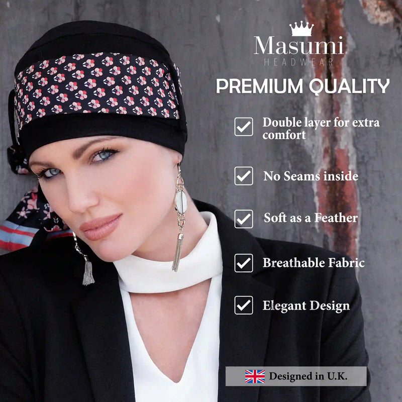This beautiful headwear and hat is ideal for those experiencing hair loss and offers a stylish alternative to wigs. The clever hat-and-scarf combination makes this style extremely versatile, allowing it to be styled in six different yet equally chic ways.