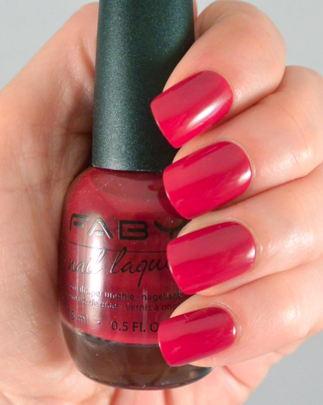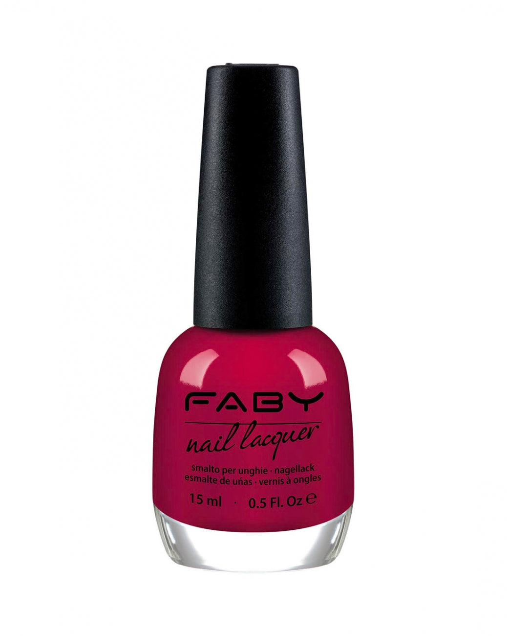 Carmine red nail polish from the Faby Classic collection. Intensity and pleasure for Red at night… the meeting of taste! Finish cream. It spreads easily and evenly. Ergonomic brush that reaches the most difficult points with a good fluidity for a flawless and long-lasting manicure.