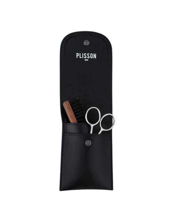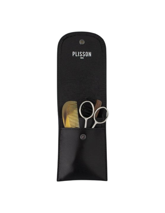 Plisson 1808 Leather Beard and Moustache Kit: Comb, Brush and Scissors