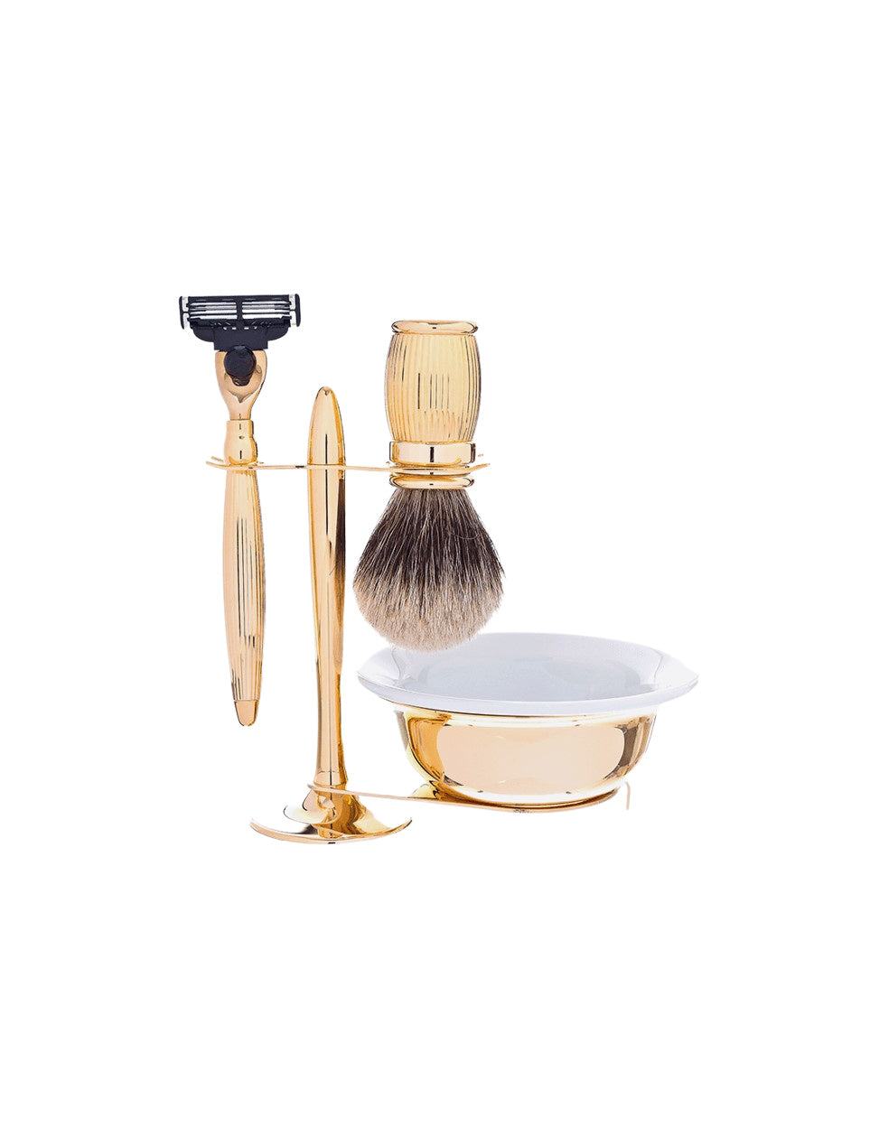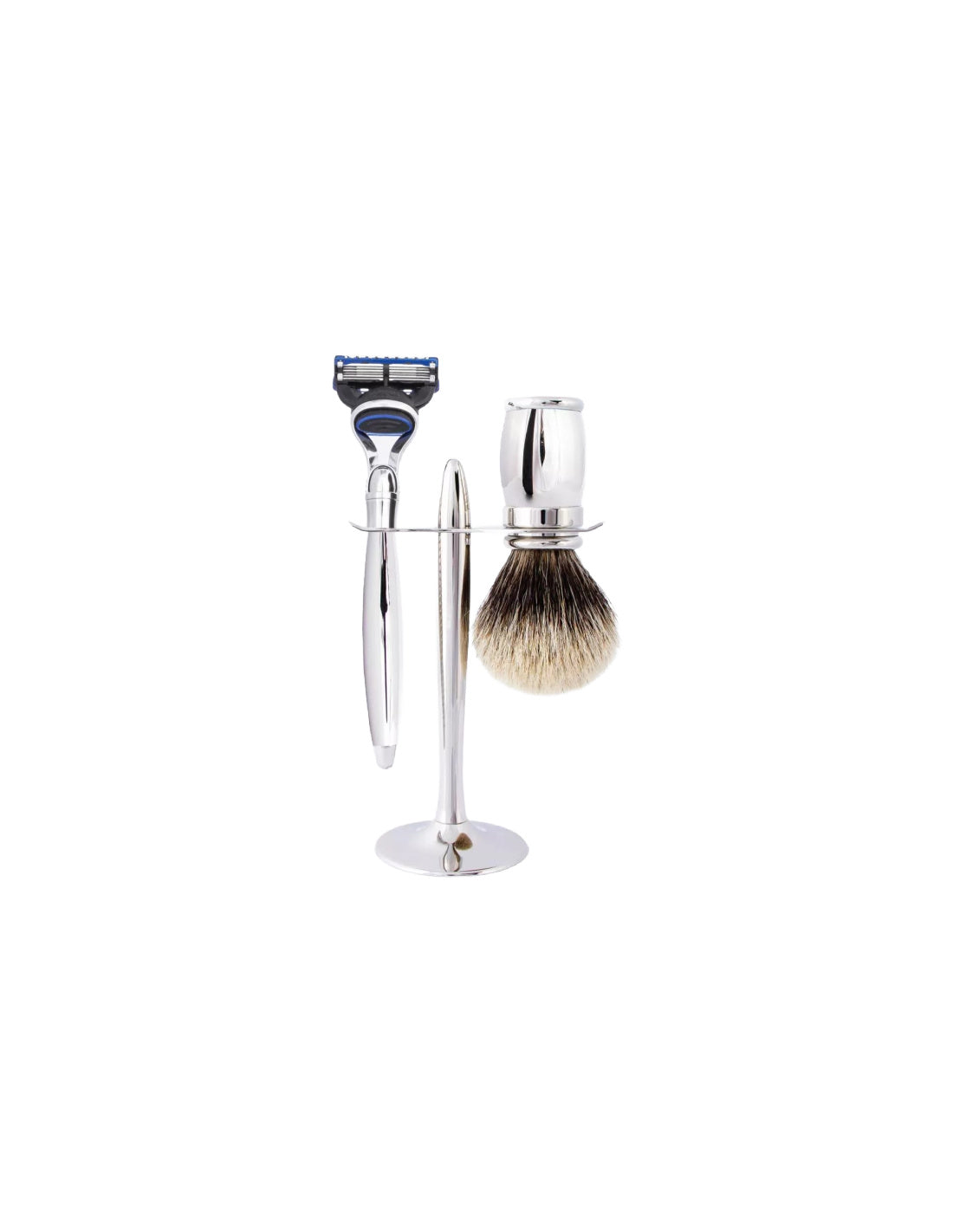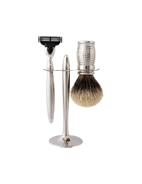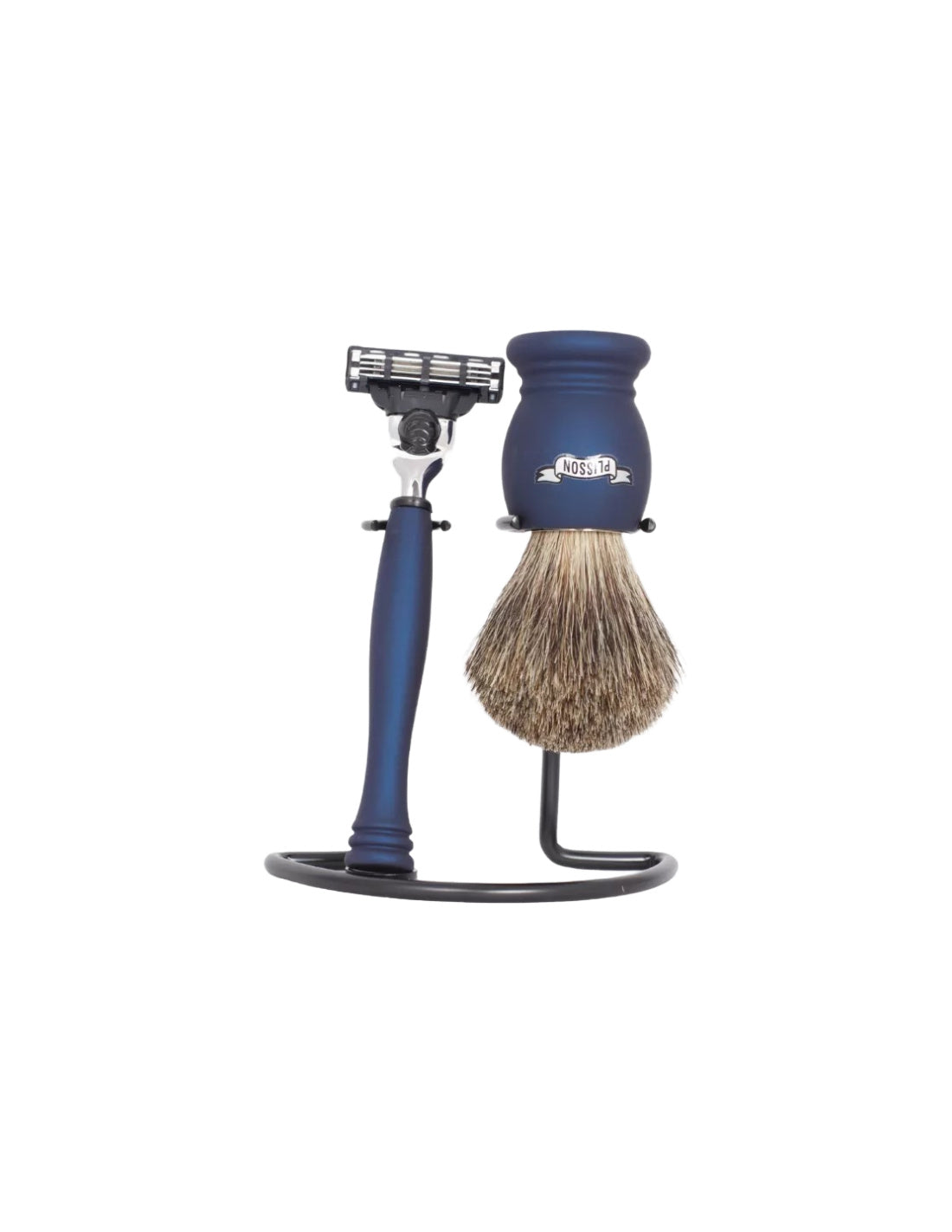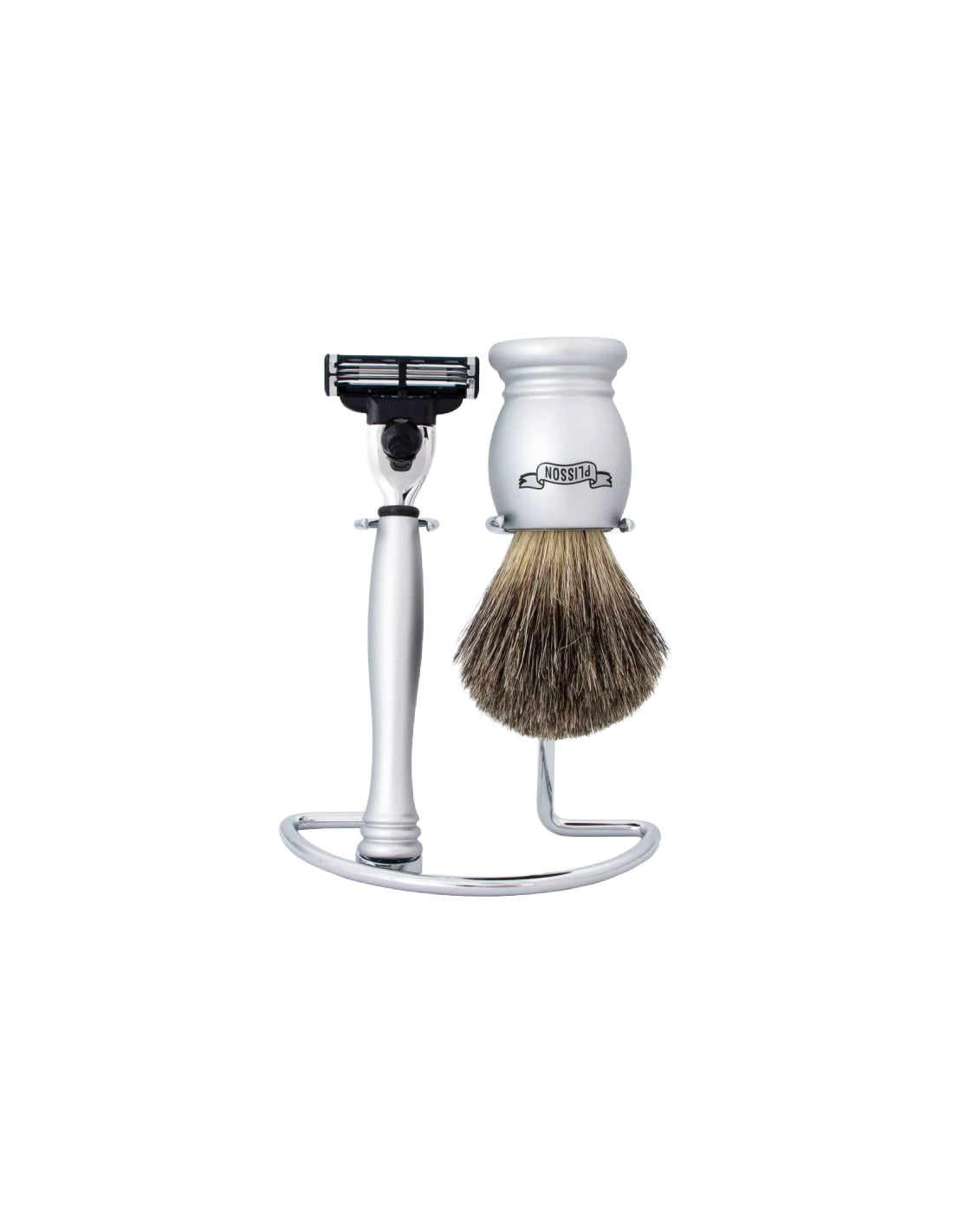Each Plisson shaving set includes a high-quality razor and brush, designed to provide a superior shaving experience. The razor features a sleek, ergonomic handle for comfortable grip and precision shaving, while the brush boasts soft bristles for a gentle and efficient lather.