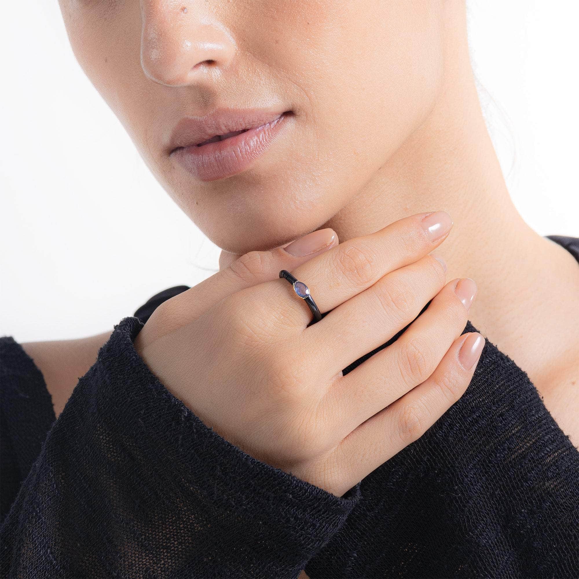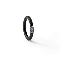 Presenting our newest minimalist ring—a striking blend of simplicity and modern design. Fashioned from Fine Silver 925 and coated with our exclusive Anthracite finish, this ring boasts a unique deep-black hue. The 4x6 mm oval-cut Blue Sapphire, set in solid 9K Gold, adds an elegant touch of luxury. Wear it solo for a bold look or stack it with other rings from our collection to showcase your style and story.