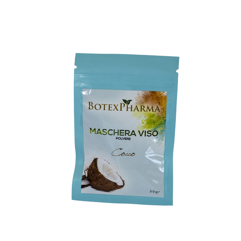 Coconut Mask, creates a moisturizing and emollient action leaving the skin soft and hydrated. Suitable for all skin types. Coconut milk powder contains a high percentage of Hyaluluronic acid with strong and soothing properties. It is often used for dry or stressed skin. Coconut milk powder mixed with hyaluronic acid nourishes deply, avoiding dehydration and soothing inflammation. This mask can also be used on sensible and young skin because it is not aggressive and does not have a high abrasive power. To be used with Botexpharma face tonic and cremes.