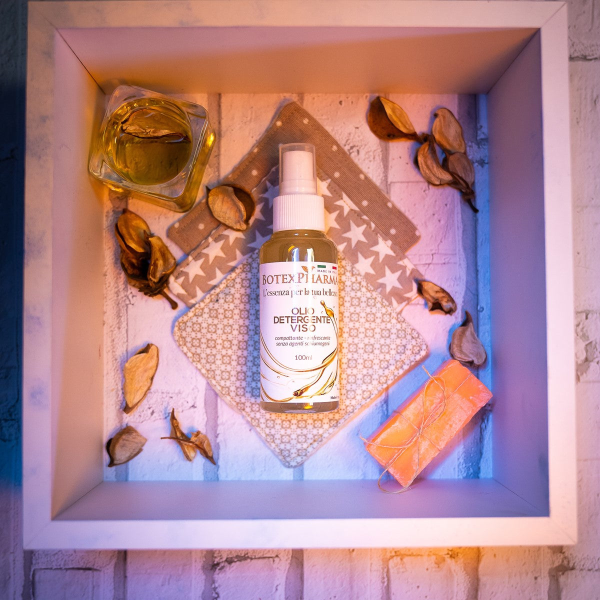 Facial cleanser, compacting and refreshing , menthol flavour. Very pleasant oily mixture, formulated for skin cleansing made of natural oils such as Castor Oil with emollient, protective, soothing and purifying properties. Tamanu oil with antimicrobial and antioxidant properties, Sweet almond oil rich in Vitamins A, E, D and Grapeseed oil that protects the skin against aging. This cleanser helps to dissolve and remove makeup, including waterproof mascara, and cleans pores from impurities. The skin is soft, silky, hydrated without getting greasy. Suitable for all skin types, even oily ones, allows a truly effective makeup removal. Applied twice a day it eliminates any trace of impurities leaving a soft and hydrated skin.