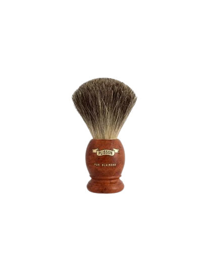 A traditionally shaped Plisson shaving brush with a comfortable grip, shaped in fine Mediterranean briar wood. Filled with pure China grey badger bristles, soft and firm at the same time, it is perfect for everyday use, both with shaving soap and shaving cream. Available in a small size (8 and 10), which is excellent for travel use, or the standard size (12), the most popular for everyday use. Made entirely by hand in Plisson’s workshop in France. Matching razor available separately.