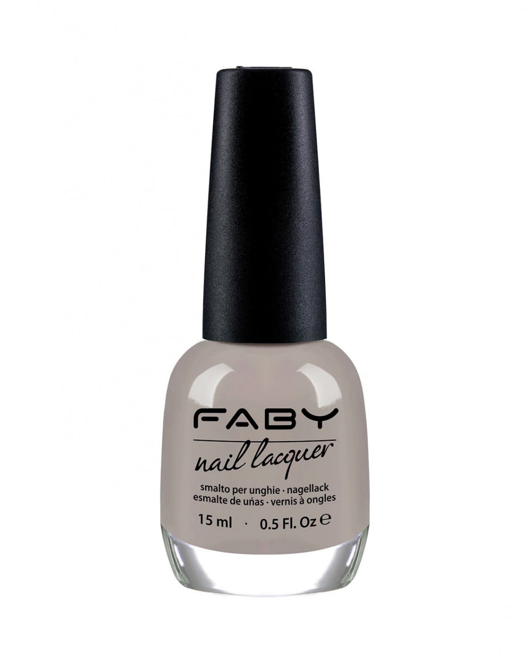 Gray nail polish from the Faby Classic collection. Metropolis is everyday life, commitment and resourcefulness, the boldness that allows you to make your way. Finish cream. Long-lasting, fast-drying, velvety and uniform nail polish.