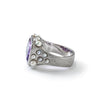Bold and vibrant, this German Kabirski ring from the Bacchus Bunch Collection is crafted from silver and plated with White Rhodium, offering both tarnish protection and hypoallergenic wear. It features a 10x14 mm octagon-cut natural Amethyst, accented by clusters of white micro pearls scattered throughout. Designed to make a statement, this ring allows you to express your individuality with flair.