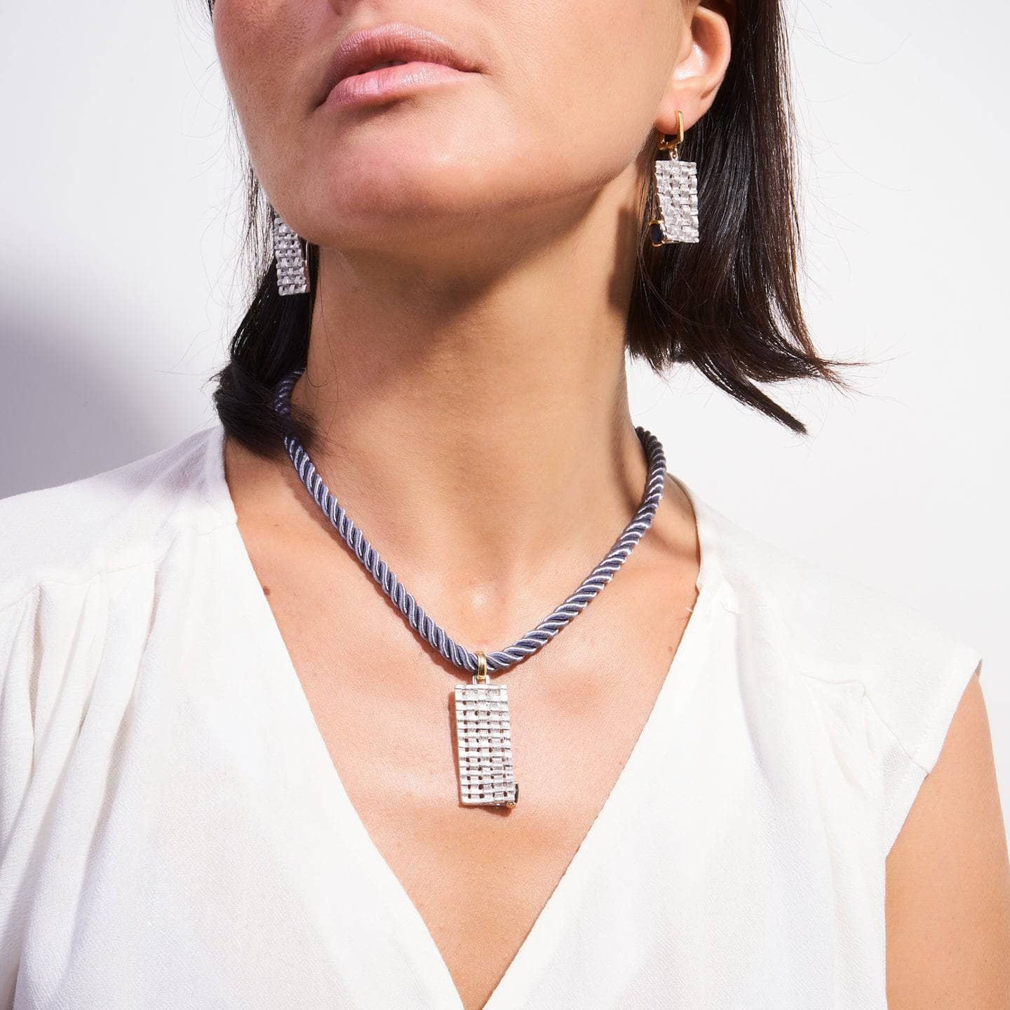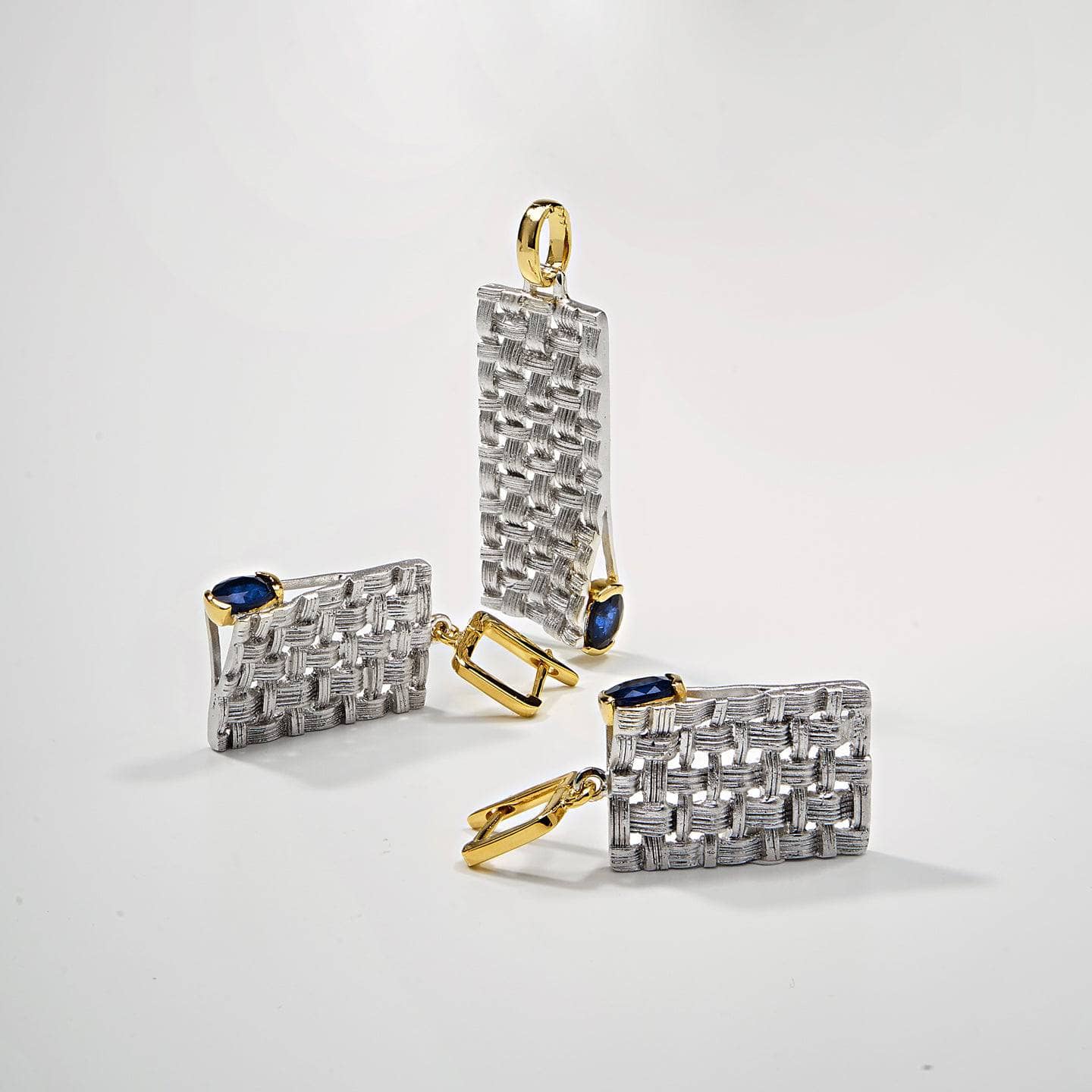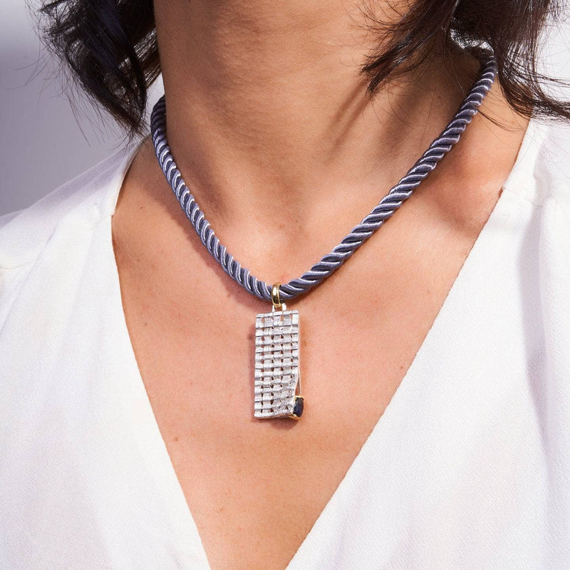 Handcrafted by talented artisans in white rhodium and gold, this striking pendant features an array of beautiful blue sapphire gemstones that emit a celestial blue light against the backdrop of the earthy precious metals that surround them. The Accalia Pendant is designed to complement the Accalia Ring and Earrings, forming a cohesive and visually stunning set.