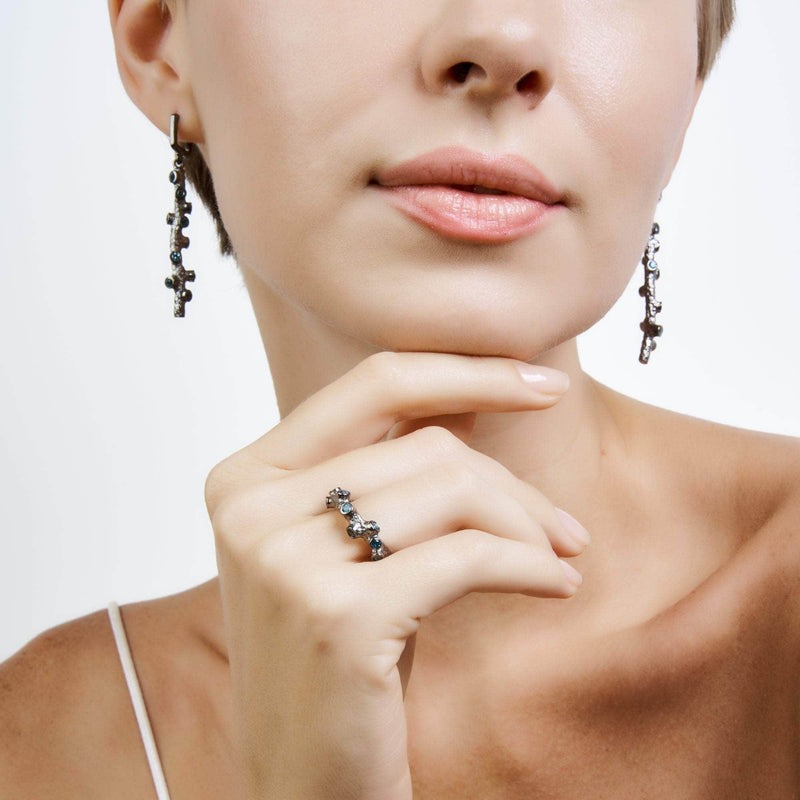 Did you know that octopus arms have sensory cells that can taste through touch? German Kabirski’s new Akhta earrings embody that same intuition, with magical London Blue Topaz "suckers" that seem to sense what’s healthy and what’s toxic. Make a bold statement with these earrings, or pair them with the Akhta ring and pendant for a complete look.