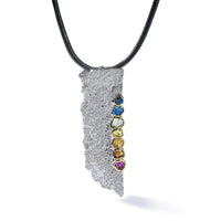 This pendant, featuring a gradient of natural raw gemstones on textured silver, appears as if it's a fragment of some unknown whole, showcasing several of German Kabirski's signature techniques. It highlights our unique rough stone setting, naturalistic handmade silver texture, and the distinctive composition created through the clash of materials, colors, and structures.