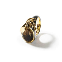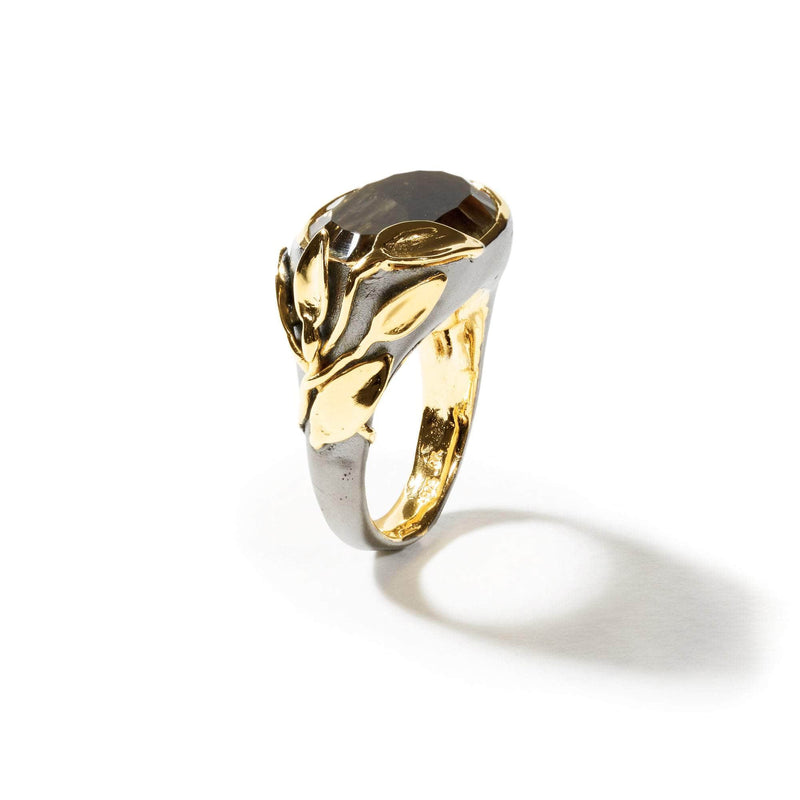In this unique designer ring by German Kabirski, nature’s green and magical gold come together beautifully. The large natural Green Amethyst crystal is set in precious 925 Silver, plated with 18K Gold and Black Rhodium, providing stress relief and empowering you to effortlessly conquer any challenges.