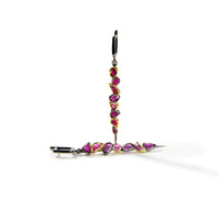 These handmade earrings are a signature design by German Kabirski, highlighting a dedication to unconventional jewelry. Crafted from black rhodium and gold-plated silver, they feature an uncut row of raw ruby crystals, celebrating the natural, unrefined beauty of the gemstones. Wearing these earrings allows you to embrace nature's treasures and express artistic individuality. This design is offered in various plating options, including 18K gold, black rhodium, and a unique blend of black rhodium and 18K gold.