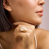 This designer ring, made from 18K gold-plated silver, features a baroque pearl embellished with natural pink and yellow sapphires. More than just an accessory, it’s a striking statement piece that demands attention. As a one-of-a-kind creation, there is no duplicate. Wearing this modern design represents a celebration of artistic individuality, breaking away from the norm and honoring the beauty of originality.