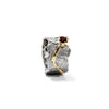 Winding gracefully along the lower edge is a textured band of radiant gold, embracing a deep crimson garnet that sparkles with opulent allure. The ring's base is a masterpiece of organic design, with flowing contours and intricate channels that captivate the eye and invite exploration.