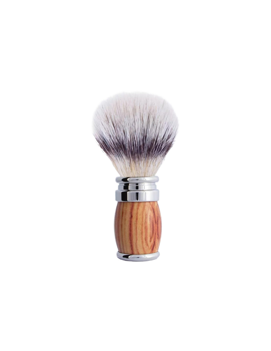 This brush features a Palladium-finished brass and Rosewood handle, offering a comfortable and secure grip.